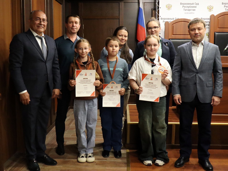 Сегодня в Верховном Суде Республики Татарстан прошло награждение участников выставки детского рисунка среди сотрудников судов республики «Не смолкнет слава тех великих лет». Выставка проводилась по случаю 80-летней годовщины Победы в Великой Отечественной войне 1941-1945 годов. Мухамадиев Камиль, Хаева Зиля и Конкина Александра получили дипломы и памятные медали из рук Председателя суда Азата Гильмутдинова. На торжественной церемонии присутствовали Председатель Совета судей Республики Татарстан Айдар Галиакберов, родители участников.