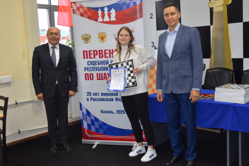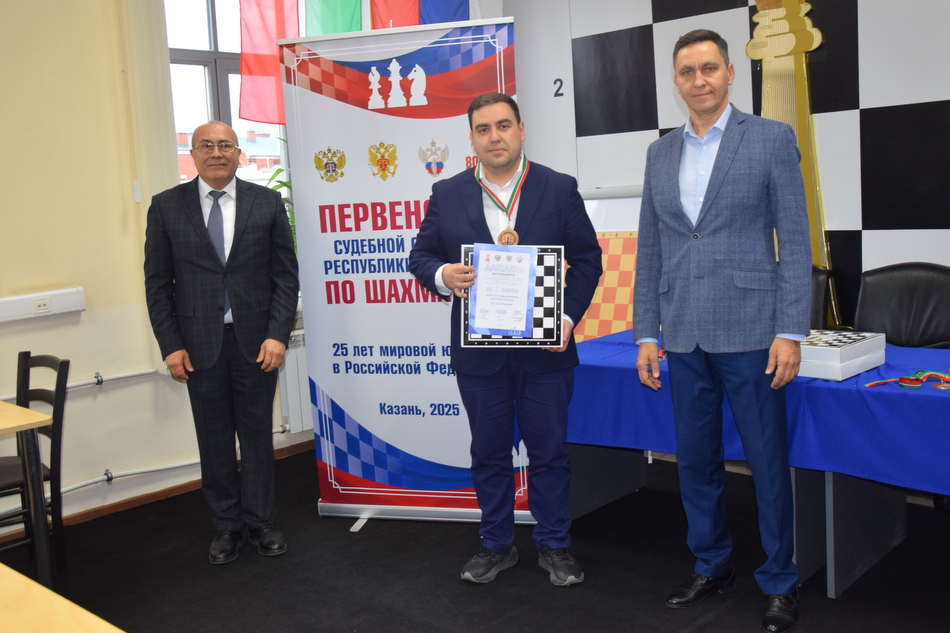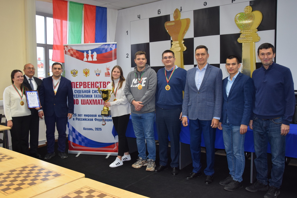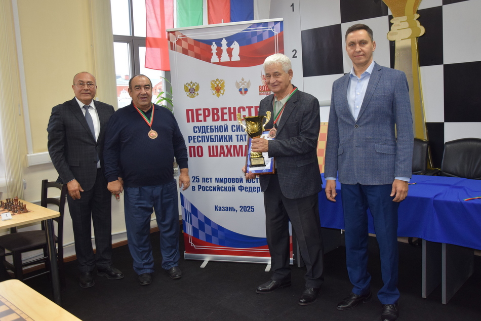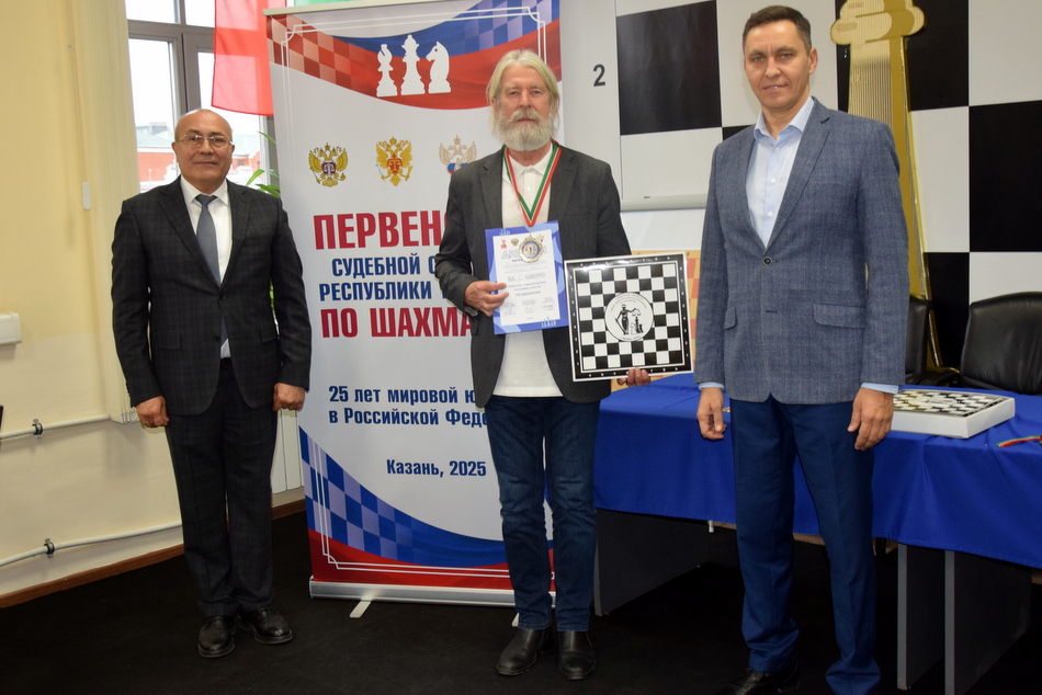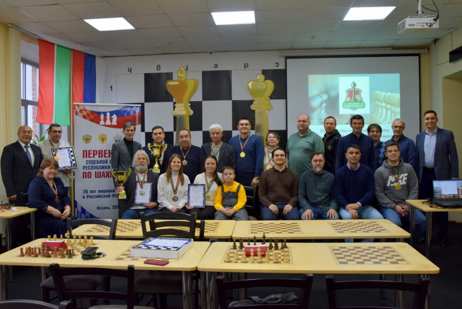 Сегодня в ГАУ «РСШОР по шахматам, шашкам, го им. Р.Г. Нежметдинова» состоялось лично-командное первенство судебной системы Республики Татарстан по шахматам, приуроченное к 80-летию Победы в Великой Отечественной войне и 25-летию мировой юстиции в Российской Федерации. Организаторы - Совет судей Республики Татарстан, Управление Судебного департамента в Республике Татарстан. Участников турнира приветствовали Председатель Верховного Суда Республики Татарстан Азат Гильмутдинов, его заместитель, председатель Совета судей Республики Татарстан Айдар Галиакберов, начальник Управления Судебного департамента в Республике Татарстан Зявдат Салихов, директор Казанского филиала Российского государственного университета правосудия им. В.М. Лебедева Рамиль Шарифуллин. От Верховного Суда Республики Татарстан в соревнованиях приняла участие команда действующих работников суда, в состав которой вошли судья Алмаз Газтдинов, помощники судей Рамис Валитов, Зульфия Мухамадиева, Линар Саитов, секретарь судебного заседания Вера Пономарева, а также команда ветеранов Верховного суда в лице судей в отставке Ильгиза Багаутдинова, Ильгиза Загидуллина, Фарита Губаева, Рената Касимова и Мансура Султанова. В командном зачете первое место заняли представители Верховного Суда Республики Татарстан, на втором месте – ветераны судов Республики Татарстан, третье место у ветеранов Верховного Суда Республики Татарстан. В личном зачете у мужчин первым оказался Сергей Мосунов (Арбитражный Суд Поволжского округа), на втором месте Ильгиз Багаутдинов (судья Верховного Суда РТ в отставке), на третьем месте Алмаз Газтдинов (судья Верховного Суда РТ). Среди женщин победила Джамиля Мингалиева (Нурлатский районный суд РТ), на втором месте — Вера Пономарева (Верховный Суд РТ), на третьем — Лилия Хайруллина (Управление Судебного департамента в РТ).