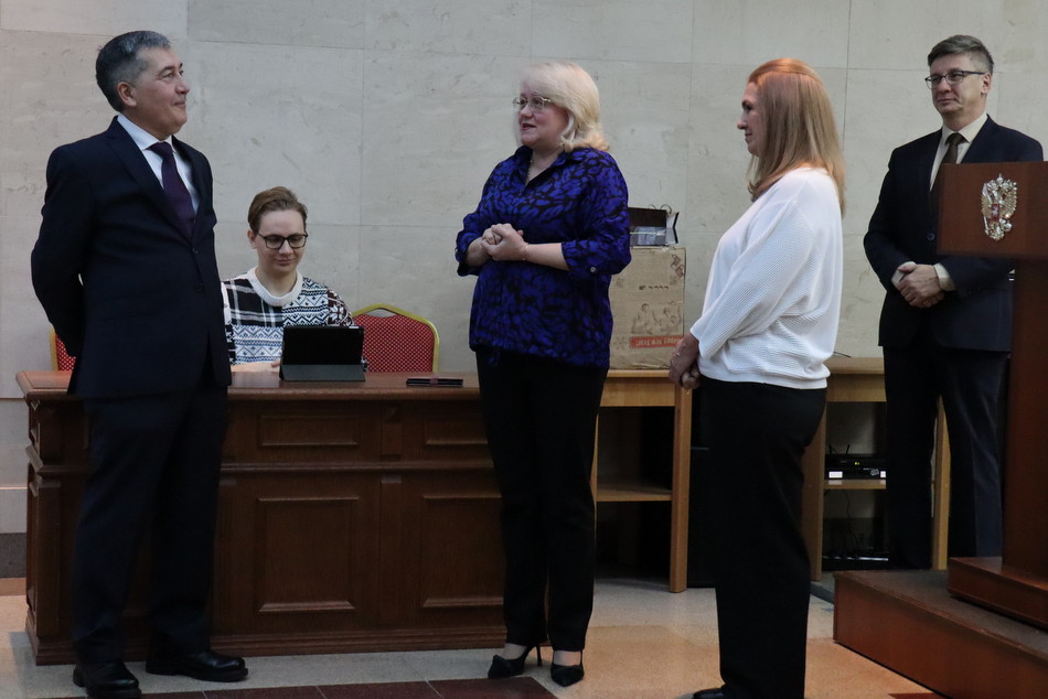 Сегодня на торжественном собрании коллектива в почетную отставку проводили судей гражданской и уголовной коллегий Залию Бикмухаметову и Ирека Низамиева. Залия Шайсултановна в судебной системе с 2002 года, начинала с деятельности в аппарате Верховного Суда Республики Татарстан, в 2014 году была назначена судьей, затем заместителем председателя Бугульминского городского суда, с 2021 года – судья Верховного Суда Республики Татарстан. Ирек Шарифзянович с 1985 года в течение 10 лет занимал различные должности в прокуратурах городов Омутнинск, Малмыж Кировской области. В 1995 году назначается судьей Вятско-Полянского районного суда, затем судьей Набережночелнинского городского суда, в 2013 году становится судьей Верховного Суда Республики Татарстан. Председатель Верховного Суда Республики Татарстан Азат Гильмутдинов, его заместители Айдар Галиакберов, Эдуард Каминский, Николай Герасимов поблагодарили судей за добросовестную деятельность, пожелали всего наилучшего на заслуженном отдыхе. Теплые пожелания высказали судьи, председатели судебных составов, сотрудники аппарата. Залия Шайсултановна и Ирек Шарифзянович поблагодарили коллег и руководство суда за годы совместной работы. |