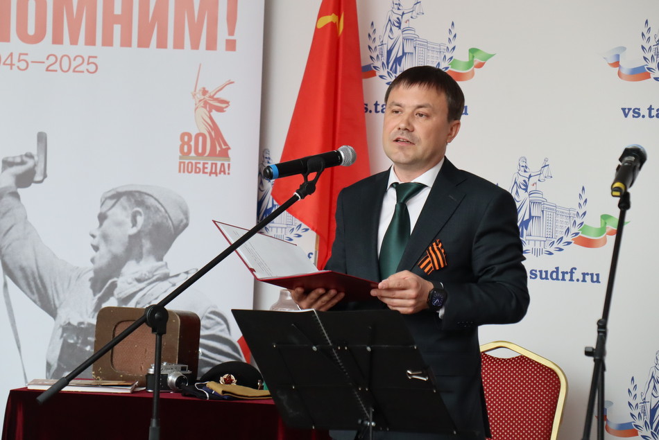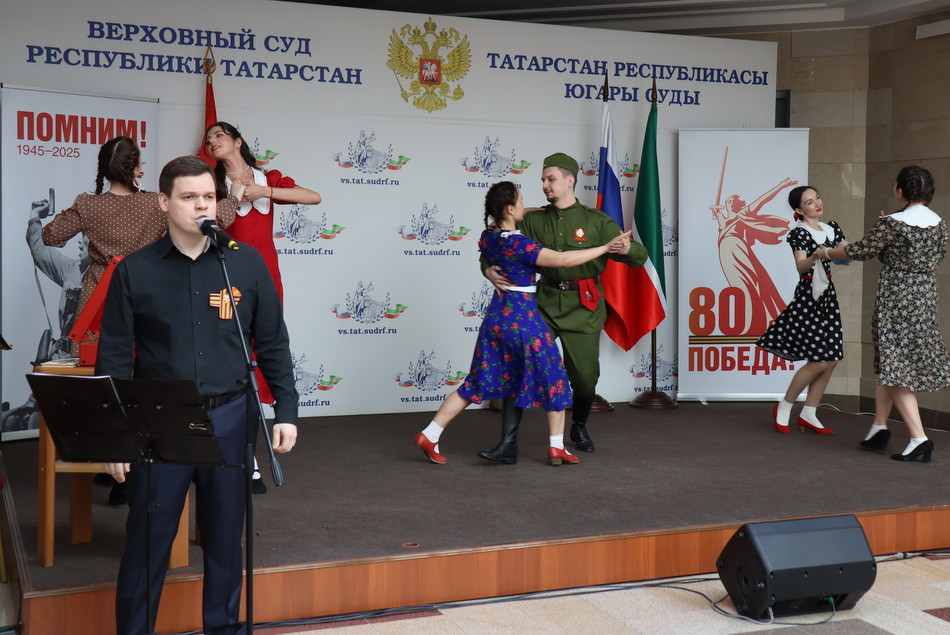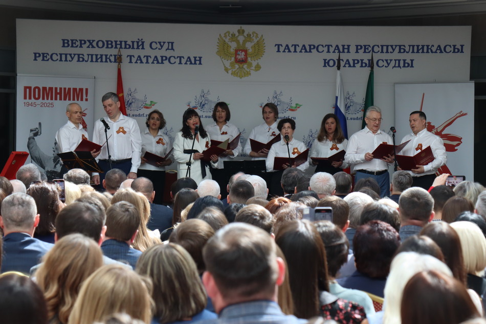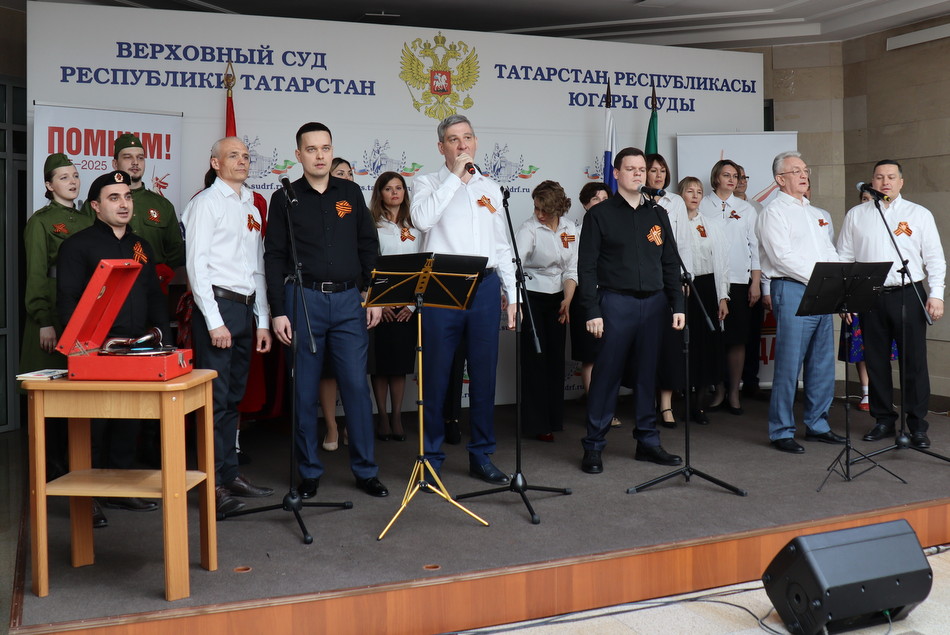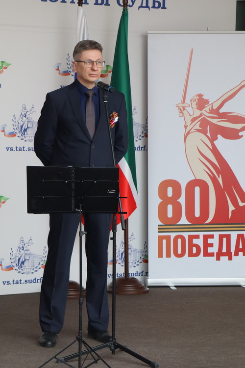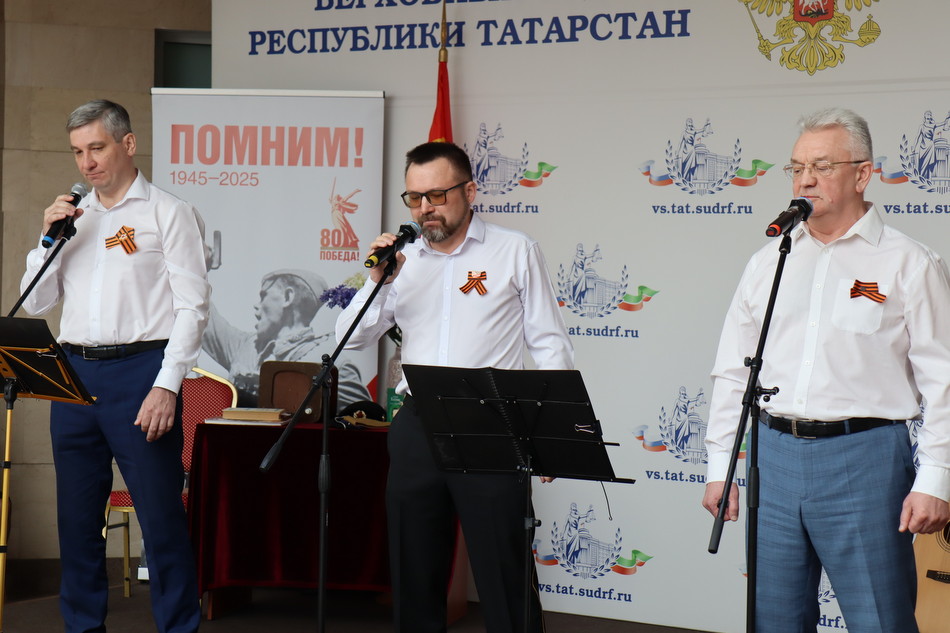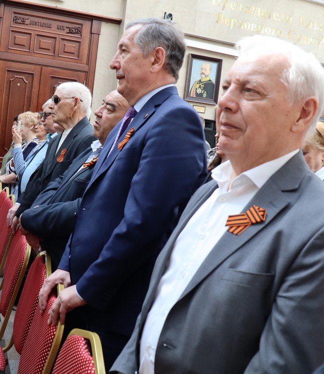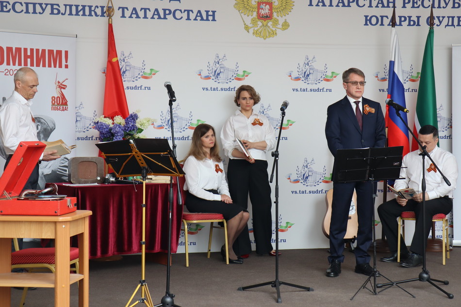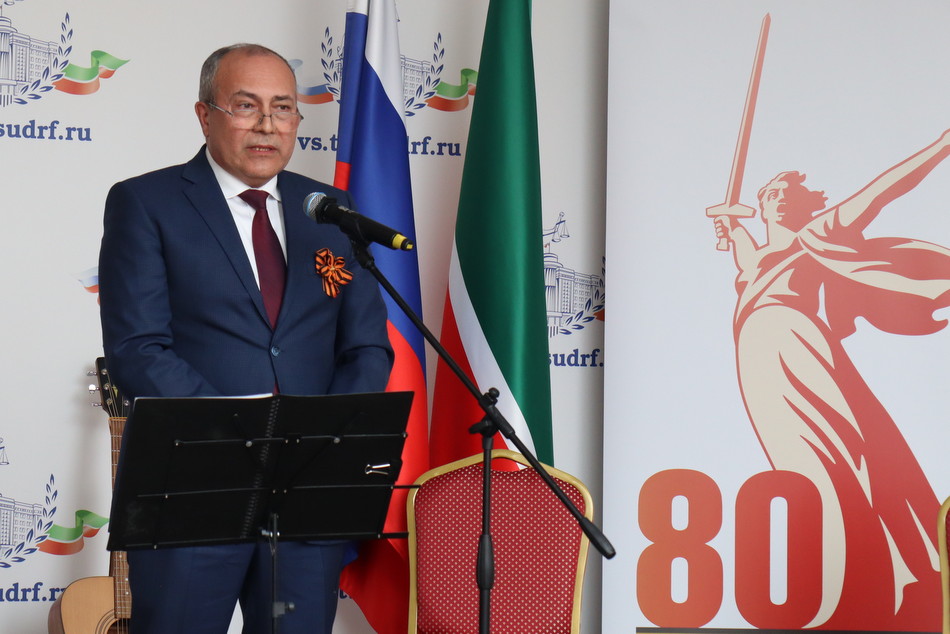 Сегодня в преддверии 80-й годовщины Победы в Великой Отечественной войне в Верховном Суде Республики Татарстан состоялся праздничный концерт. Гостей мероприятия в холле здания суда встречала выставка рисунков детей сотрудников судов, посвященная великому подвигу наших предков. Председатель Верховного Суда Республики Татарстан Азат Гильмутдинов поздравил коллектив суда и гостей с праздником. Среди приглашенных судьи и работники аппарата суда, находящиеся в почетной отставке, а также внук и правнуки Председателя Верховного суда ТАССР с 1938 по 1941 годы Шамсутдинова Гарафутдина Хуснутдиновича. Гарафутдин Хуснутдинович был призван на фронт 8 июля 1941 года Бауманским РВК Казани, являлся военным прокурором Казанского гарнизона.