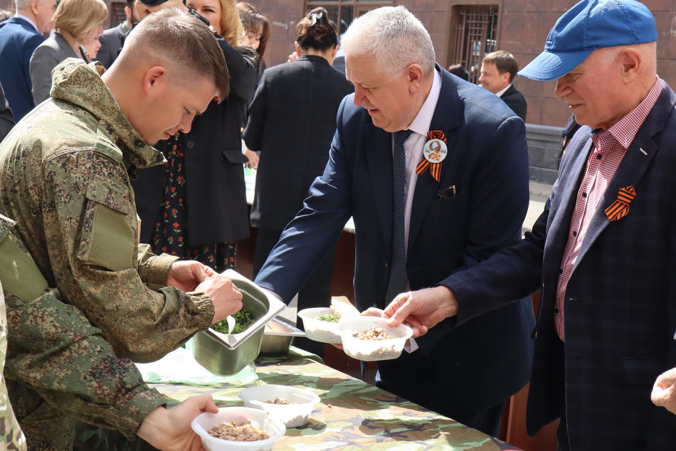 Во время праздничной программы на сцене сменяли друг друга великолепные концертные номера. Прозвучали глубоко патриотичные песни и стихи в исполнении сотрудников суда. Яркие выступления участников не раз побуждали зрителей украдкой смахивать слезу, подпевать и аплодировать артистам. На экранах транслировался видеоролик «Бессмертный полк» в память о героях из семей работников суда. По окончании мероприятия все присутствующие почтили минутой молчания павших в боях за Родину. После концерта зрителей угостили фронтовой гречневой кашей с тушенкой и горячим чаем. Солдатская кухня наполнила атмосферу уютом и теплом.