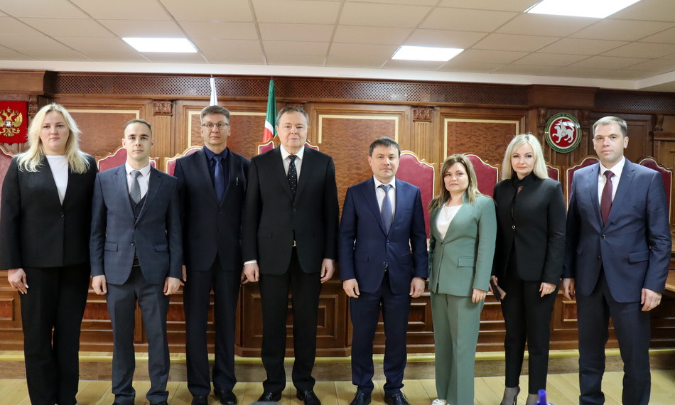 Председатель Верховного Суда Республики Татарстан Азат Гильмутдинов и Главный федеральный инспектор по Республике Татарстан Виктор Демидов вручили сегодня удостоверения судьям, назначенным Указом Президента Российской Федерации №244 от 17 апреля 2025 г. Удостоверения получили заместитель Председателя Верховного Суда Республики Татарстан Николай Герасимов, заместитель председателя Зеленодольского городского суда Анжела Ахунова, председатель Тукаевского районного суда Радик Зиннатов, заместитель председателя Чистопольского городского суда Регина Фархаева, судья Вахитовского районного суда г.Казани Эльвира Марданова, судья Нижнекамского городского суда Евгений Шувалов. В мероприятии приняли участие судьи Верховного Суда Республики Татарстан, руководители районных судов Казани. |